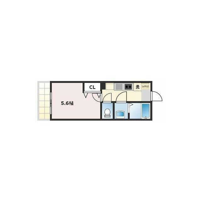 | 間取り | 1K(洋5.6) | 主要採光面 | 南西 |